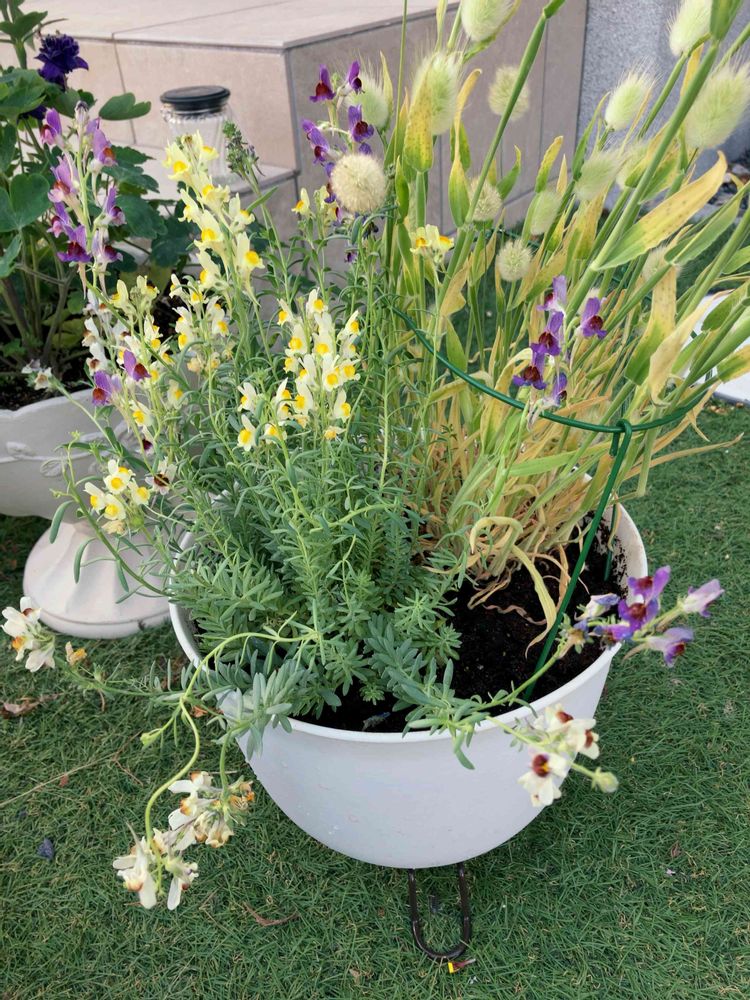鉢スタンドを買いに百均に行ったのに近くの花屋さんでリナリアとバニーテールを見つけてつい購入😓