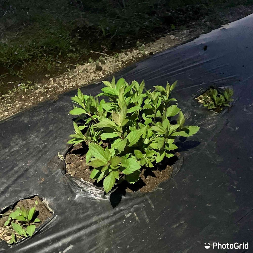 帰宅後の薄暗い中、小分けして植えてある12株の畝の真ん中に、ドスンと植え替えてみた💦。