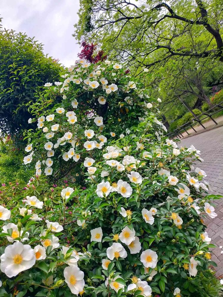 サクラ🌸の後には🌿葉が目立ちますが白いお花が咲いていると