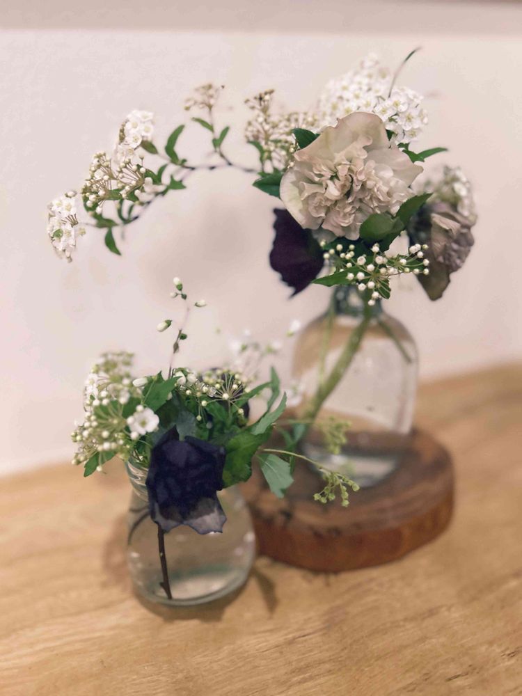 先輩の庭からクリスマスローズを沢山分けていただき生けていましたが、リメイクの小さな子達。色ガラスに飾りたかったのですが、サイズがなく透明のガラスに😊この一週は夏日和が続いてます、そして花々が咲き乱れてますね。地球温暖化を肌で感じる日々です。
