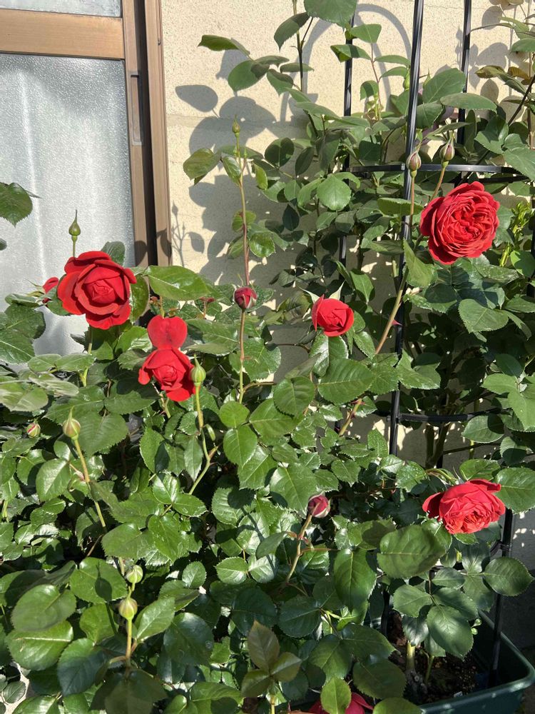 ツヤツヤの綺麗な葉に沢山咲いていますね😍🌹