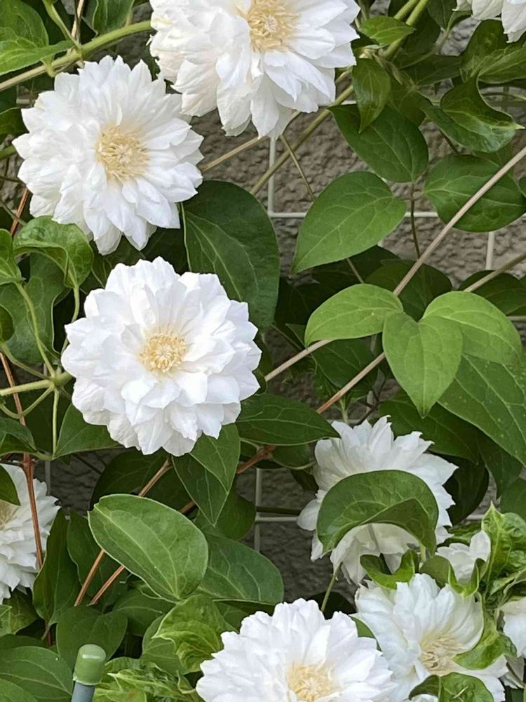 クレマチス ダッチェス オブ エジンバラがたくさん咲いています🤍🤍🤍