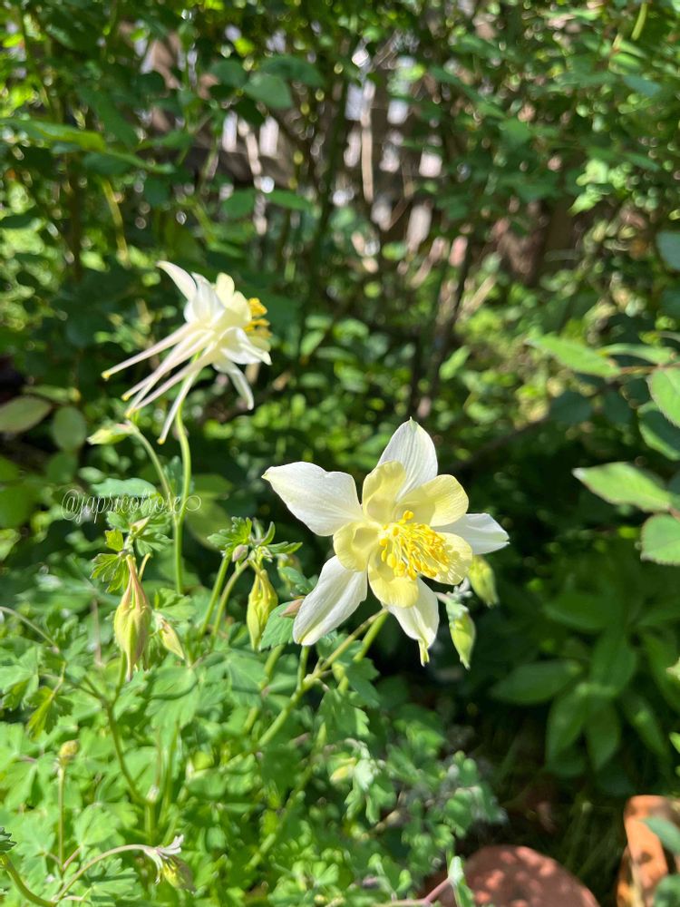黄色いオダマキ。種まきから2年目でふんわりと可愛い花が咲きました✨