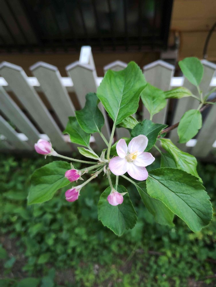 りんごの花(初めて咲きました、今まで剪定の仕方が間違っていて何年も花が咲きませんでした)
