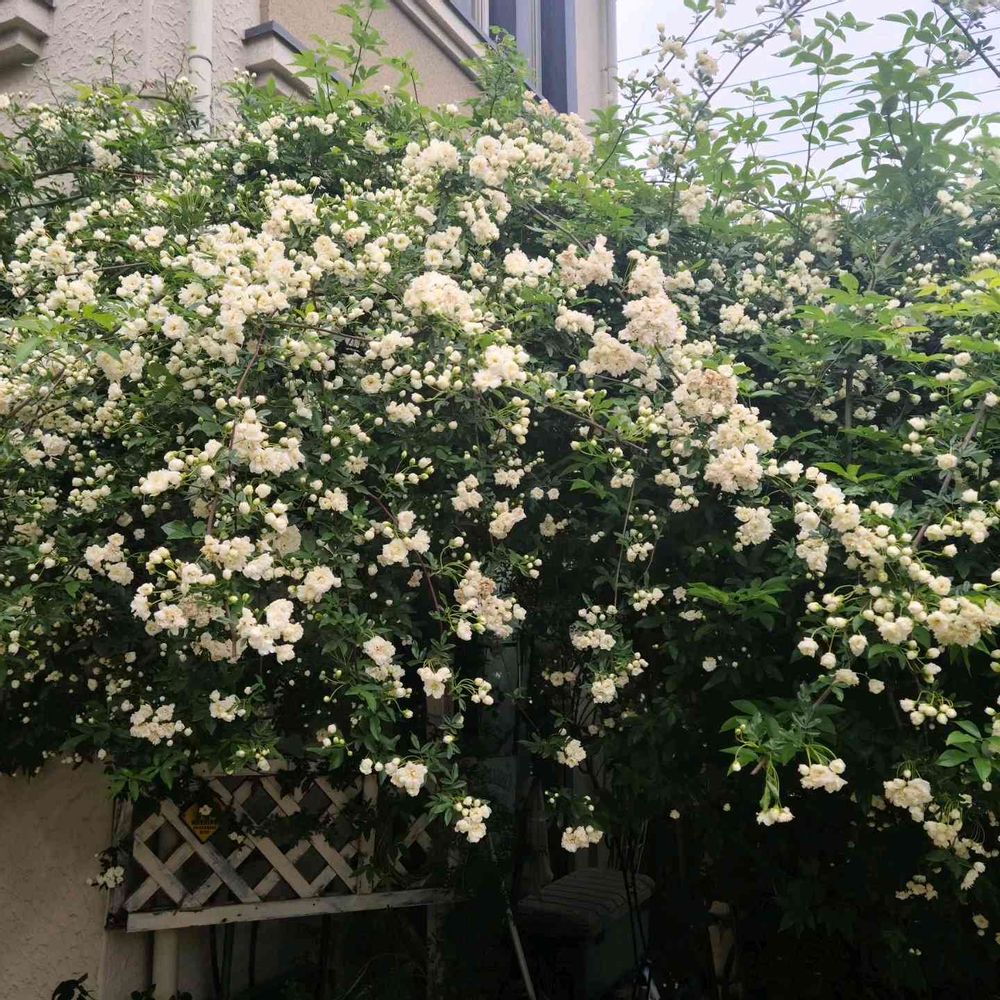今の家では13年ですが、以前のマンションの一階の庭から移植して持ってきたので15年ほどになります💦😅庭全体を2つのアーチをポールで結び、複数のツルバラを這わせ、窓枠や雨樋、に針金を渡して繋ぎ、フェンスにも這わせてるので、庭全体がドームのようになってます😂🌹🌱