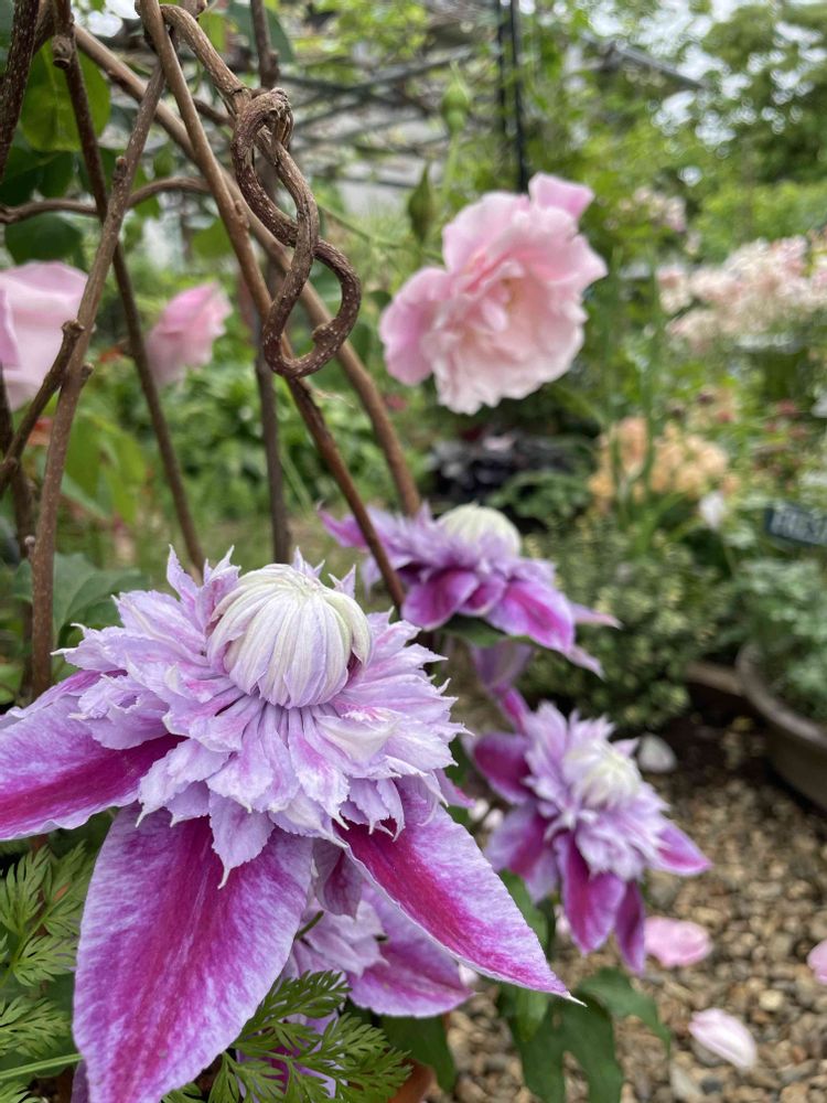 さん、可愛いでしょ🥰とても華やかで、もっと育ったら庭の主役級になるかも。クレマチス大好きです✨