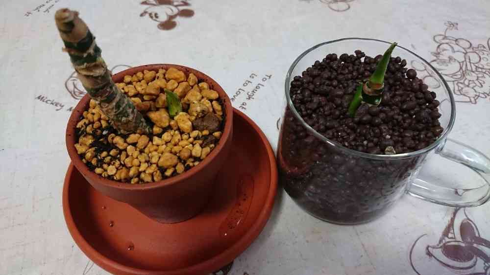 ・ハイドロボール?なのに穴あきプラスチック鉢植えで誰も水をあげていない