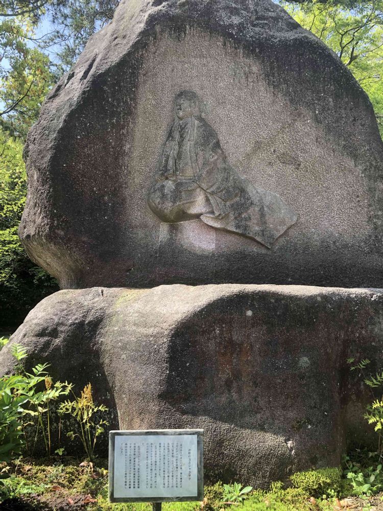 金沢の尾山神社境内にて松を背景に、母衣(ほろ)を背負った前田利家公の像をパチリ!📸🌲🐎🗡️🤗🌞