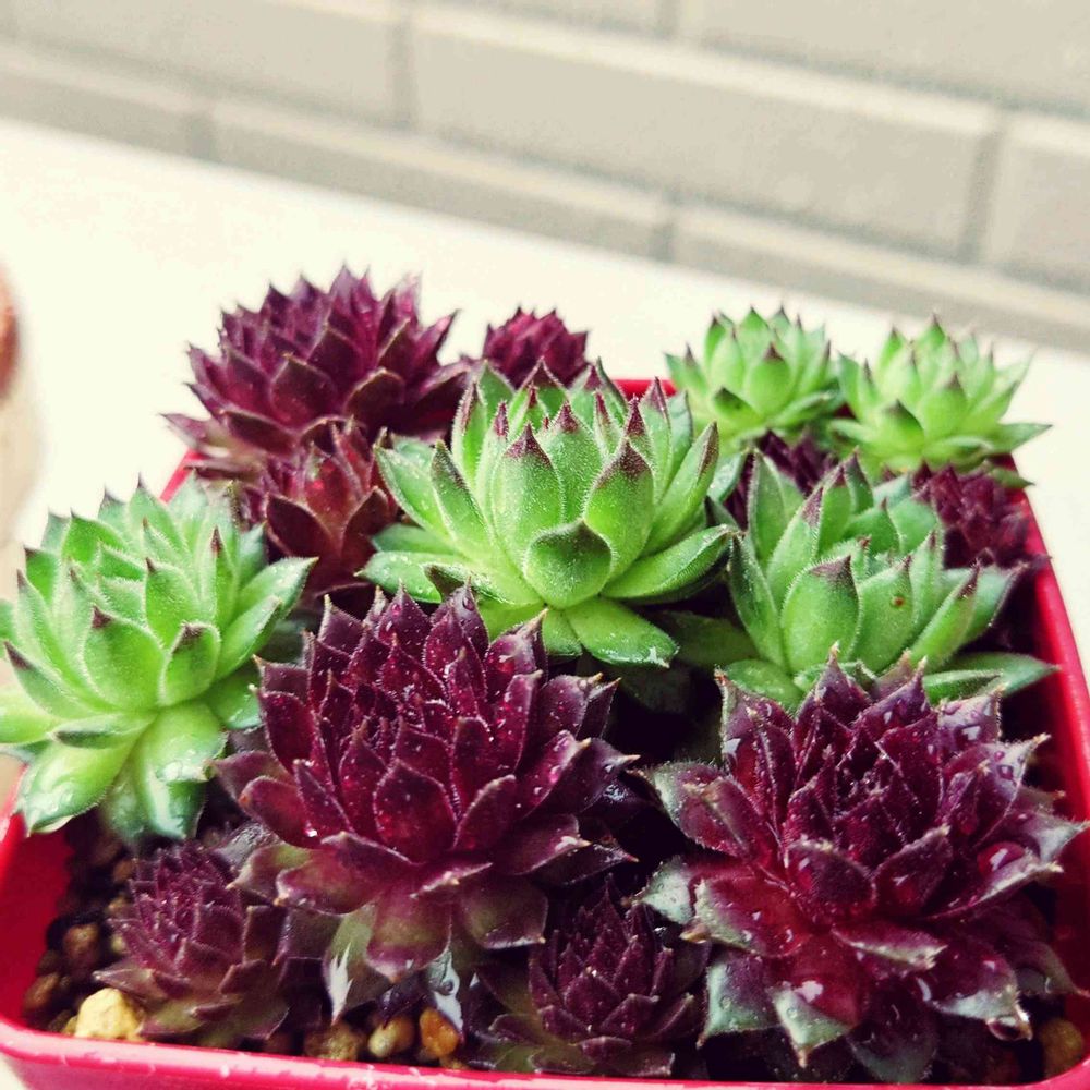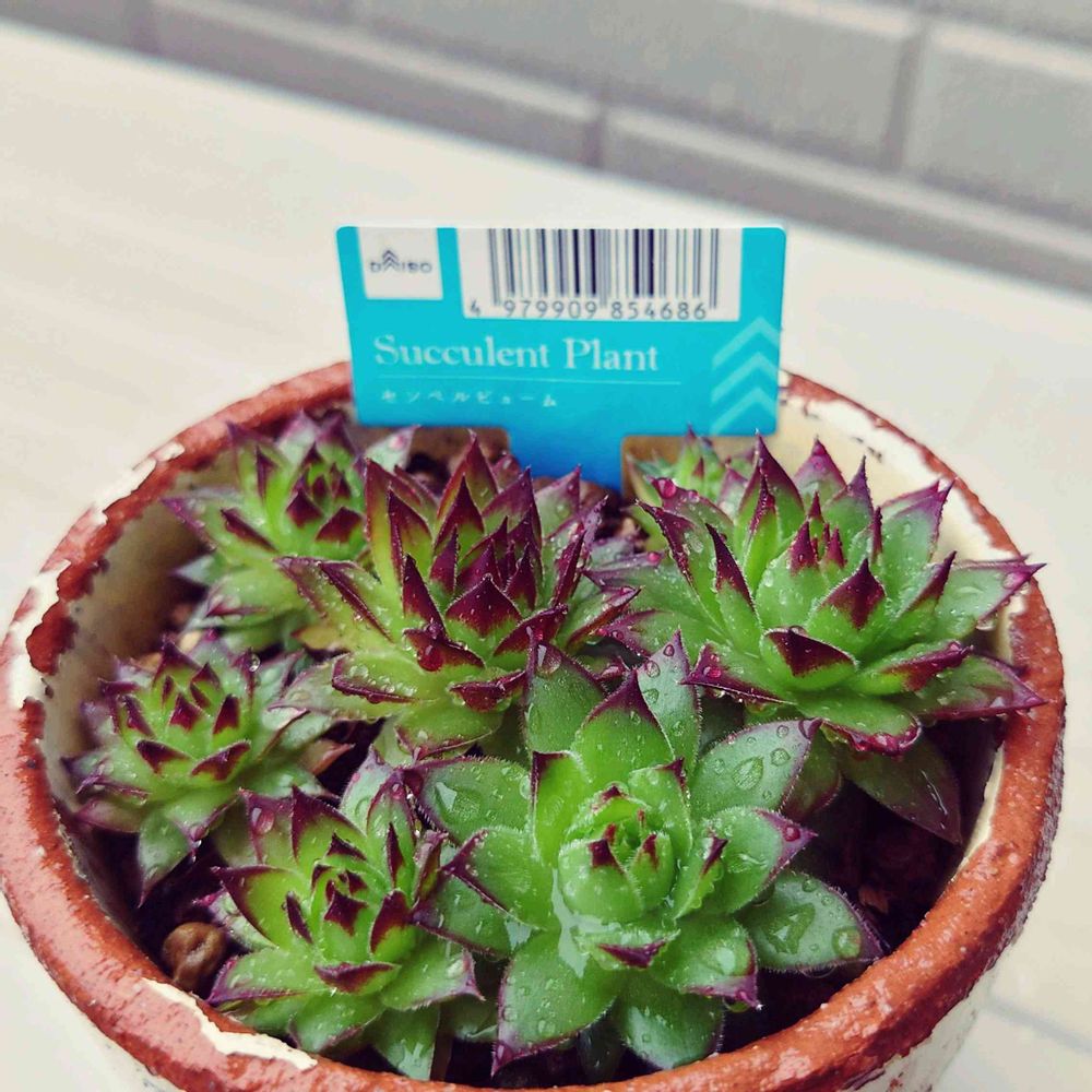 朝イチ、 バルコニーを覗いて見ると 雨に濡れた【センペルビウム】が 生き生きとして綺麗なのに思わず📱_(-ω•_パシャ