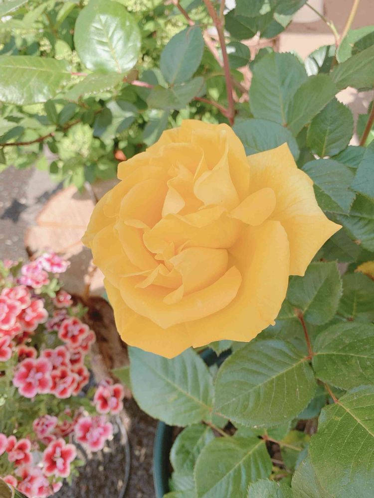 葉も花びらもつやつやしていて、輝くように咲いてます💛