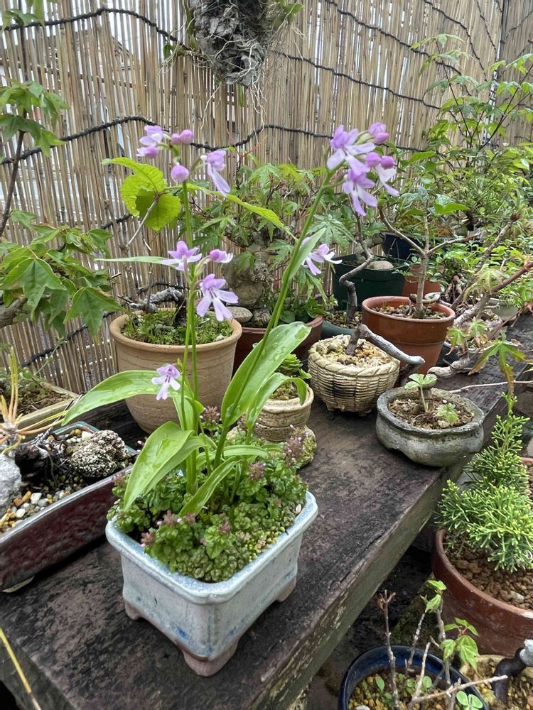 最近、山野草を始めました。旦那は盆栽、私は下草を学び始めました。 自宅で陶芸しています、豆鉢など作っています。の