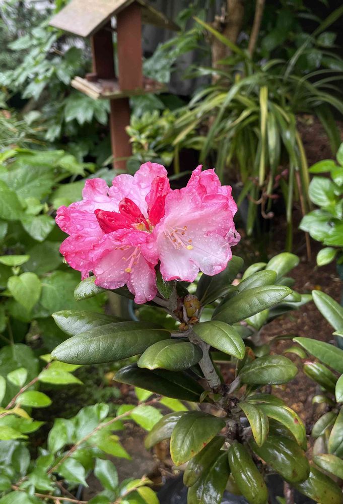 やっと咲いた石楠花の色が赤から段々ピンクに変わってきました♪
