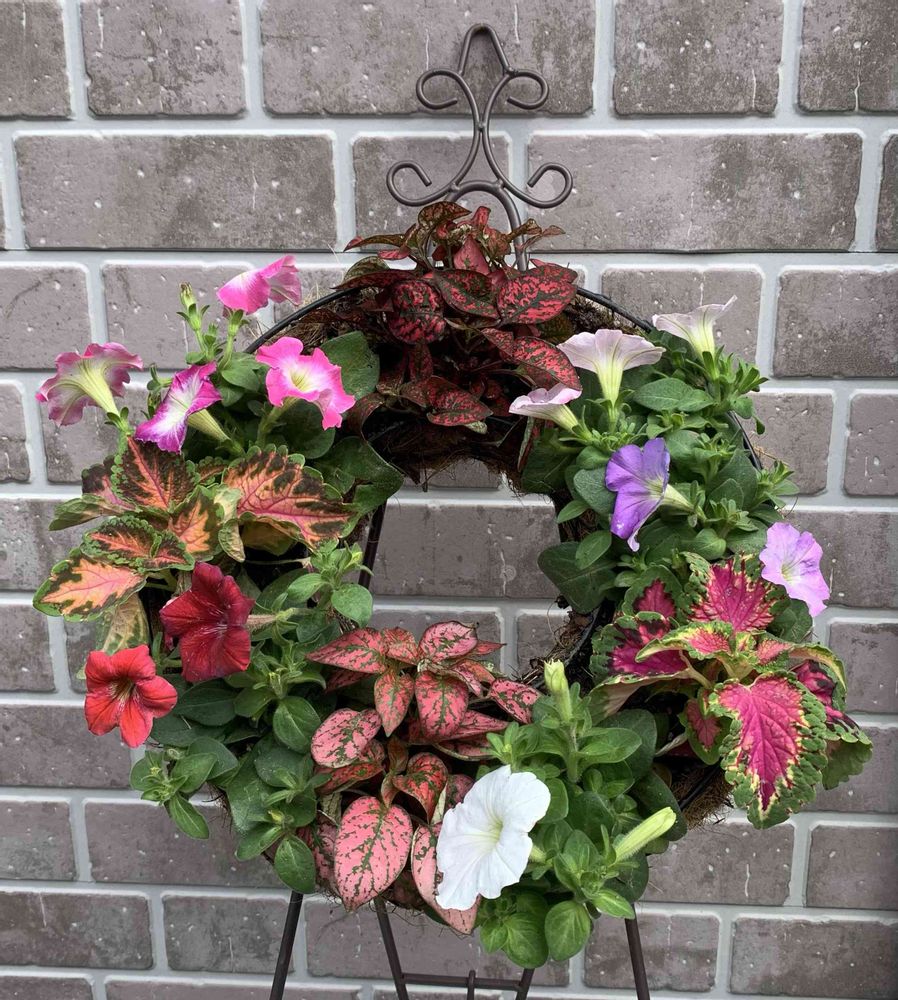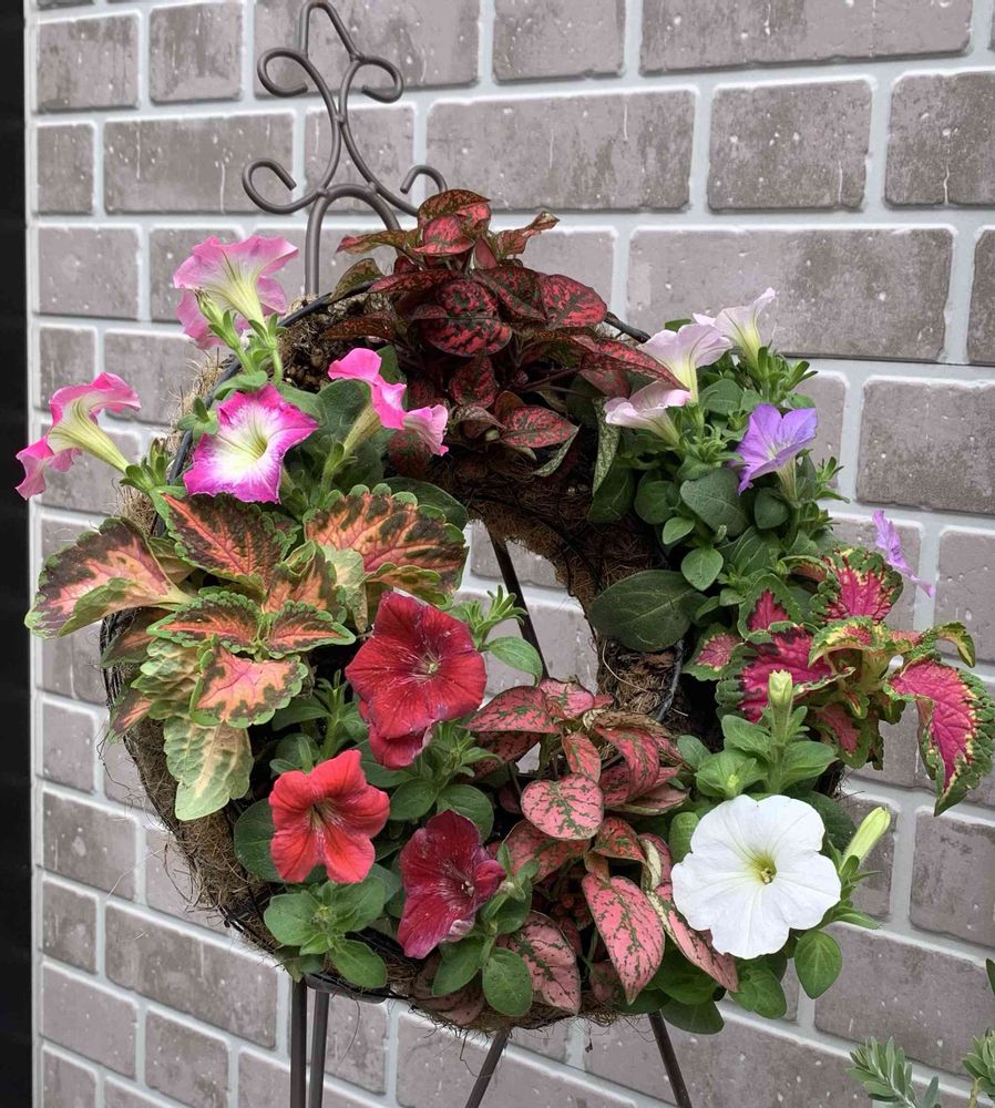 リースバスケットのペチニュアがどんどん咲き始めてます💕