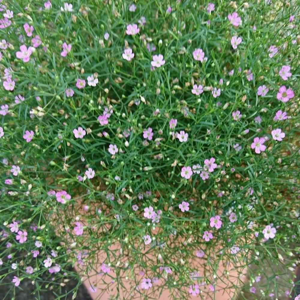 風に運ばれて来たカスミ草ジプシーローズです。鉢から零れそう😅