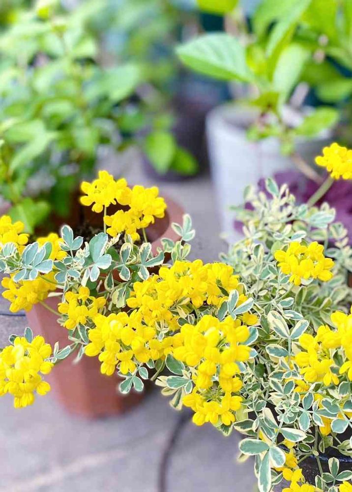 ぷっくりした黄色いお花と斑入りの葉っぱが爽やか💛🌿