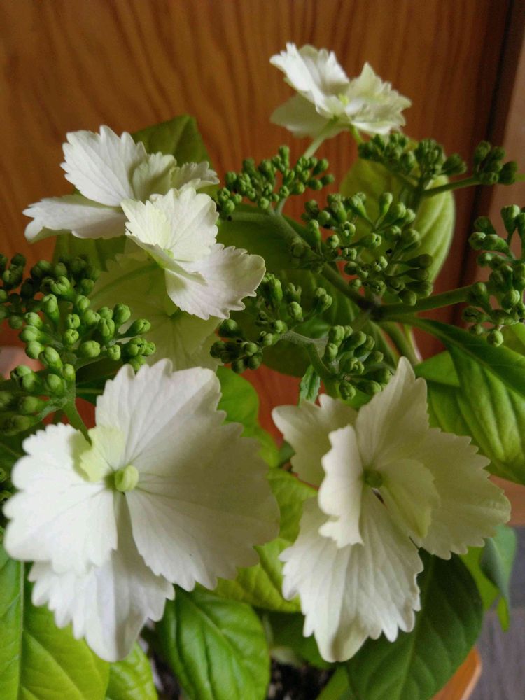 挿し木から過保護に育てた冬紫陽花が、やっと開花しました٩(๑❛ᴗ❛๑)۶♡🌿♡🌿♡🌿♡🌿