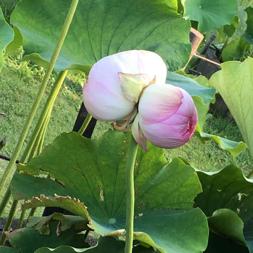 蓮の双頭花です。一本の茎に 複数のつほみがつくのは珍しい!