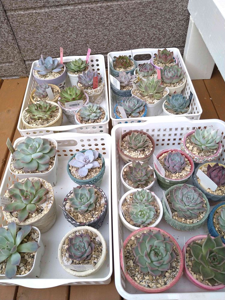 うちはエケベリアは旦那さんの物が多いので旦那さんが管理しています。植え替えは物が多すぎなので私も一緒にしますが😊