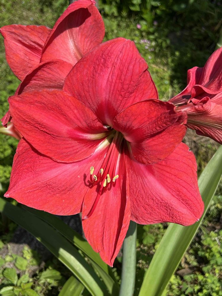 アマリリスが畑で育っています。球根を大きく育てるために花を確認したら全て取り除いています。