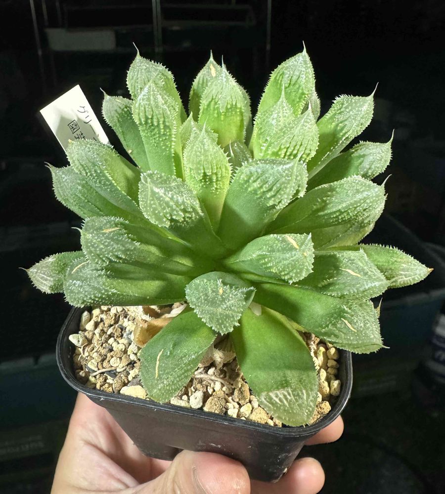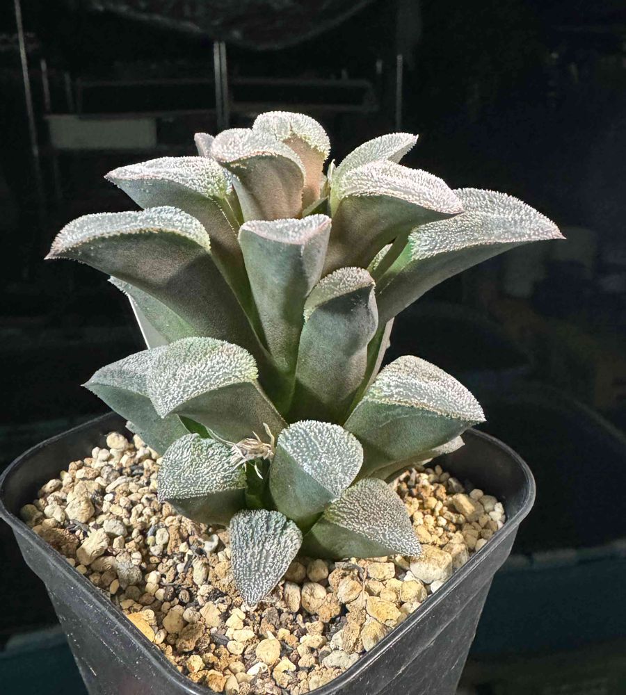 冬にチランジアに遮光されて徒長したハオルチアです、どうぞご覧下さい
