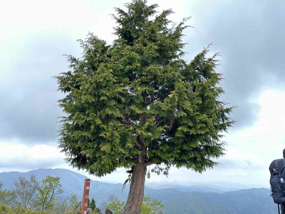 GW初日❗️岐阜県関市の蕪山⛰️途中の株杉🌲から頂上のシンボルツリー🌲まで🏃♂️シンボルツリーの下には遠くに雪☃️を被った白山🏔️です🏃♂️