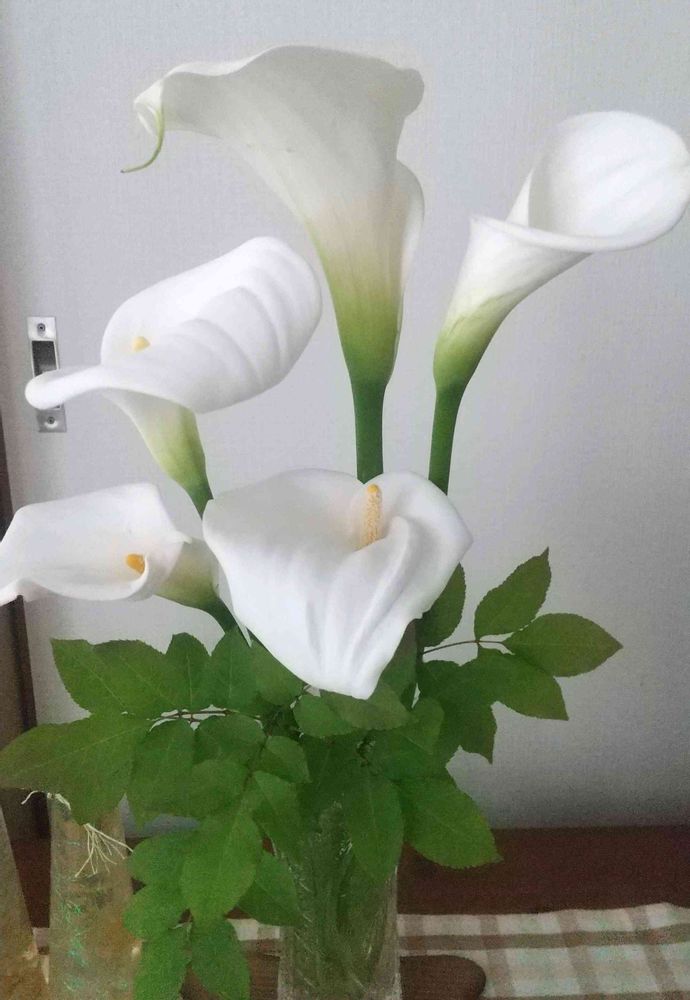 カラーが沢山咲いたのでアオダモの🌿と一緒に切り花にしました❣️