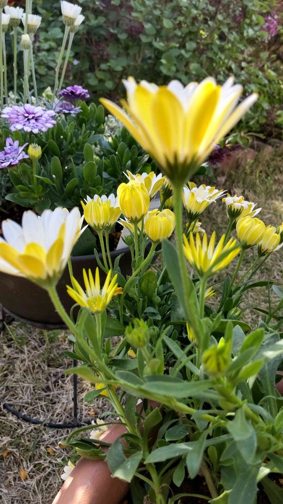 ③④は、三年目のキララ 花の裏が🟡咲くと表は白に、まだ朝陽が☀️少ししか当たらないので、こんな状態ですね~😀