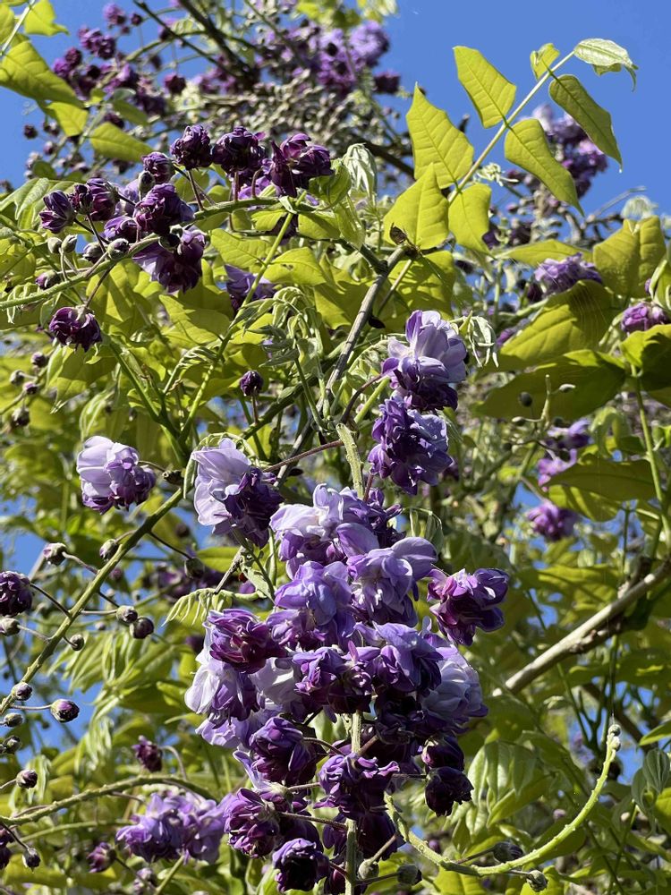 我が家の花畑で、八重黒龍藤が咲いてきました
