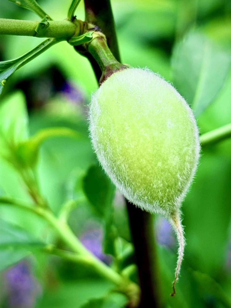本年4月4日に投稿した実生の桃🍑の小さな実を今朝発見、ああ産毛が可愛い子。嬉しさ爆発💥です。