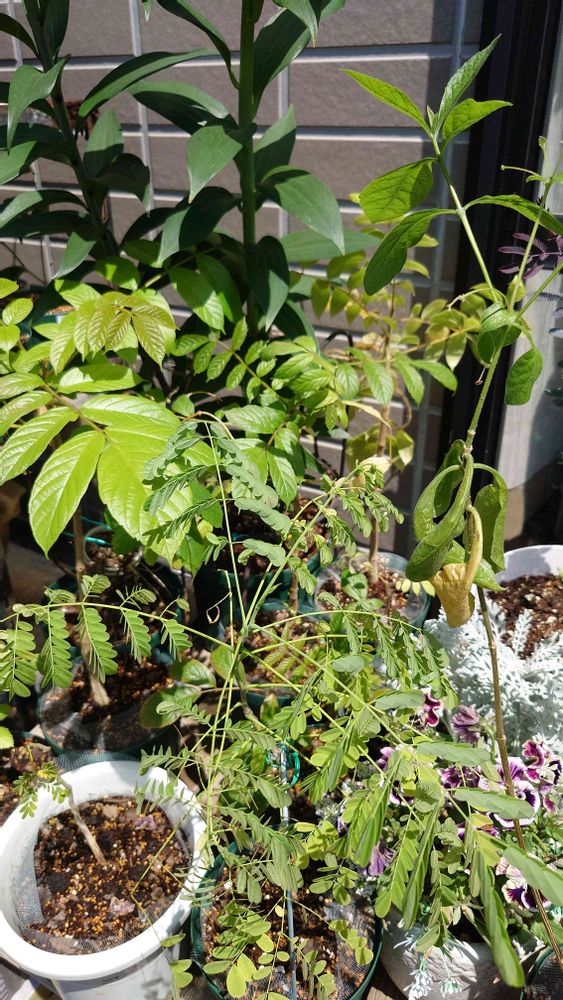 やっとネットで見つけた2年前の種から発芽した カエンボク(アフリカンチューリップ)沖縄の県花キバナオオゴチョウ 植え替えして 外に出した