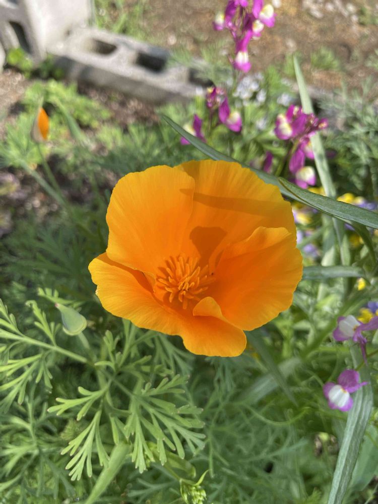 種からの子、ハナビシソウが咲きました。元気いっぱいオレンジ色🧡