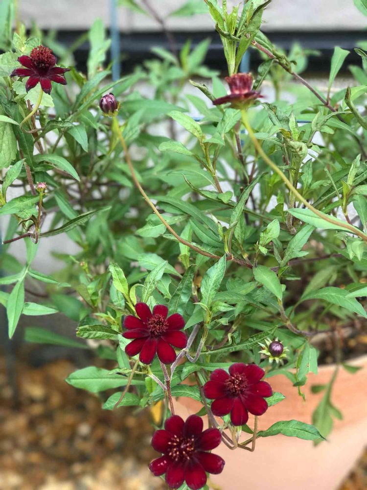 毎日暑いですね〜チョコレートコスモスさんは不思議なお花です 寒さの方が苦手なのかも。
