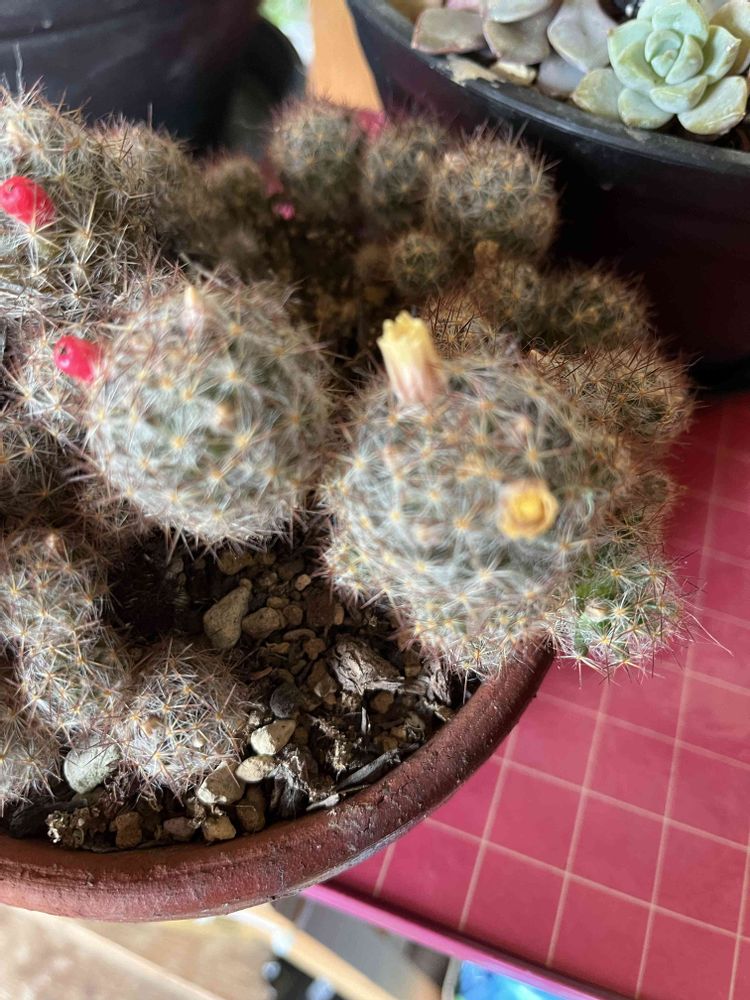 似た感じのサボさんだけど 一鉢で花色違ってて楽しいですね🔴🟡☺️