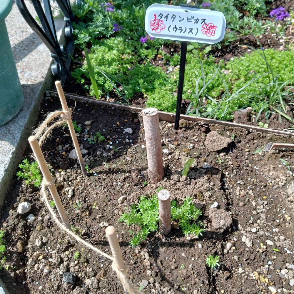 去年、花壇に初めて植えて育てた冬越し株脇から新芽が出てきました😎