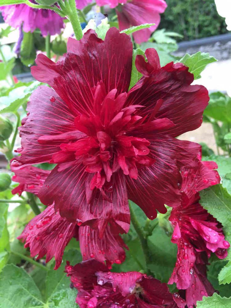 クッキーさんのタチアオイ,赤い花,雨上がりの投稿画像