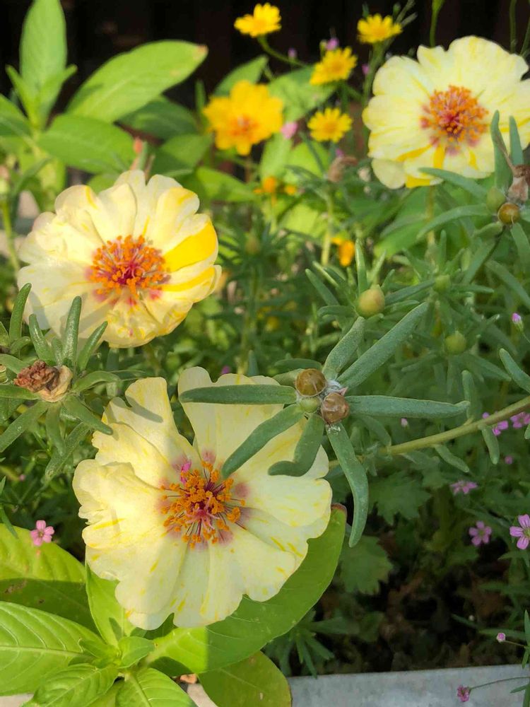 去年はここに白と黄色の松葉ボタンが植えてあって、どうやら混ざったみたい