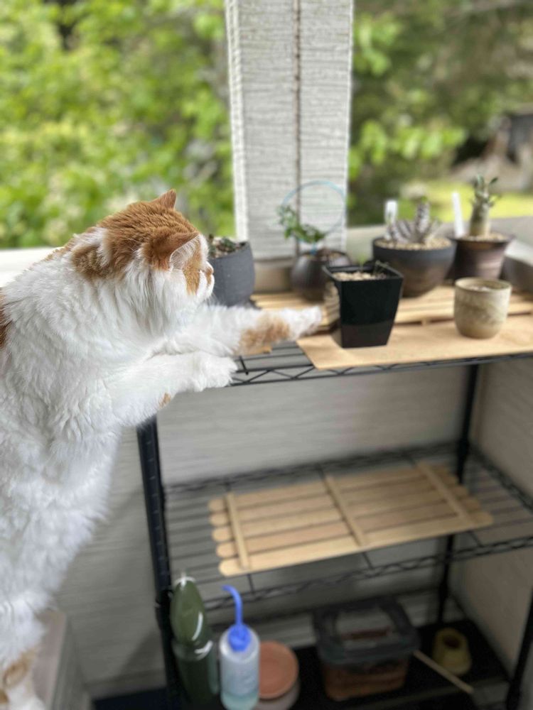 植物にちょいちょいするマイキーさん、可愛いですね😸