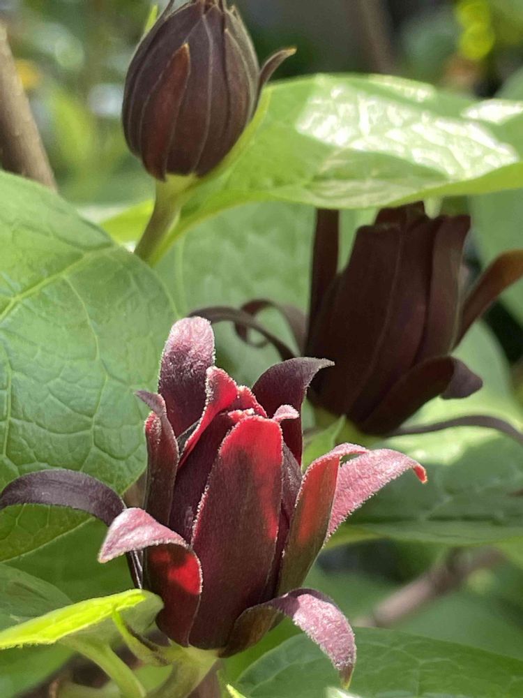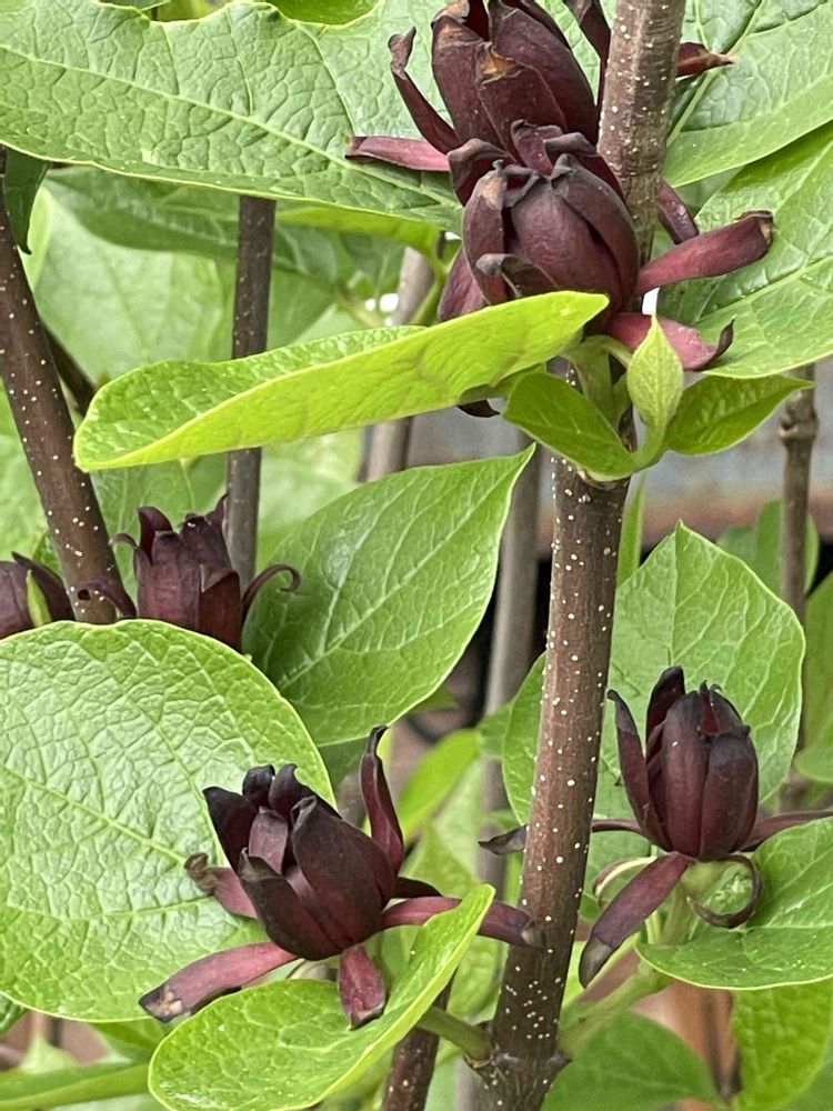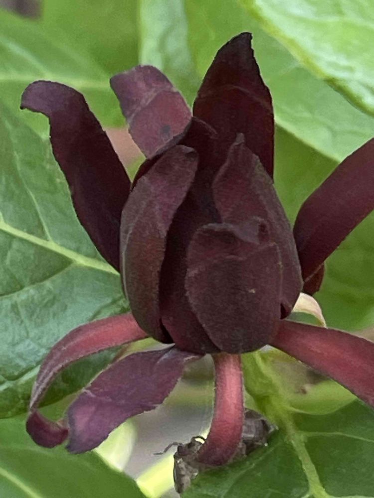 実家の庭で珍しいチョコレート色のお花が咲いていました