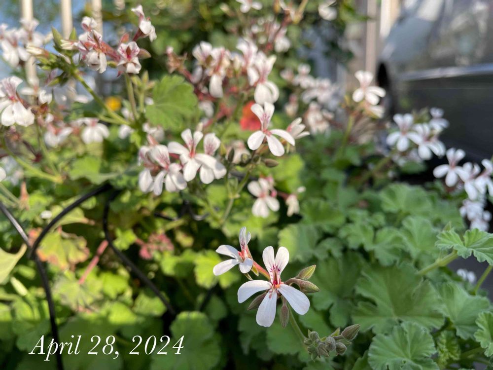 ②ナツメグ・ゼラニウムが咲きそろいました。やっぱり失った斑は戻ってこないのでしょうか🥲
