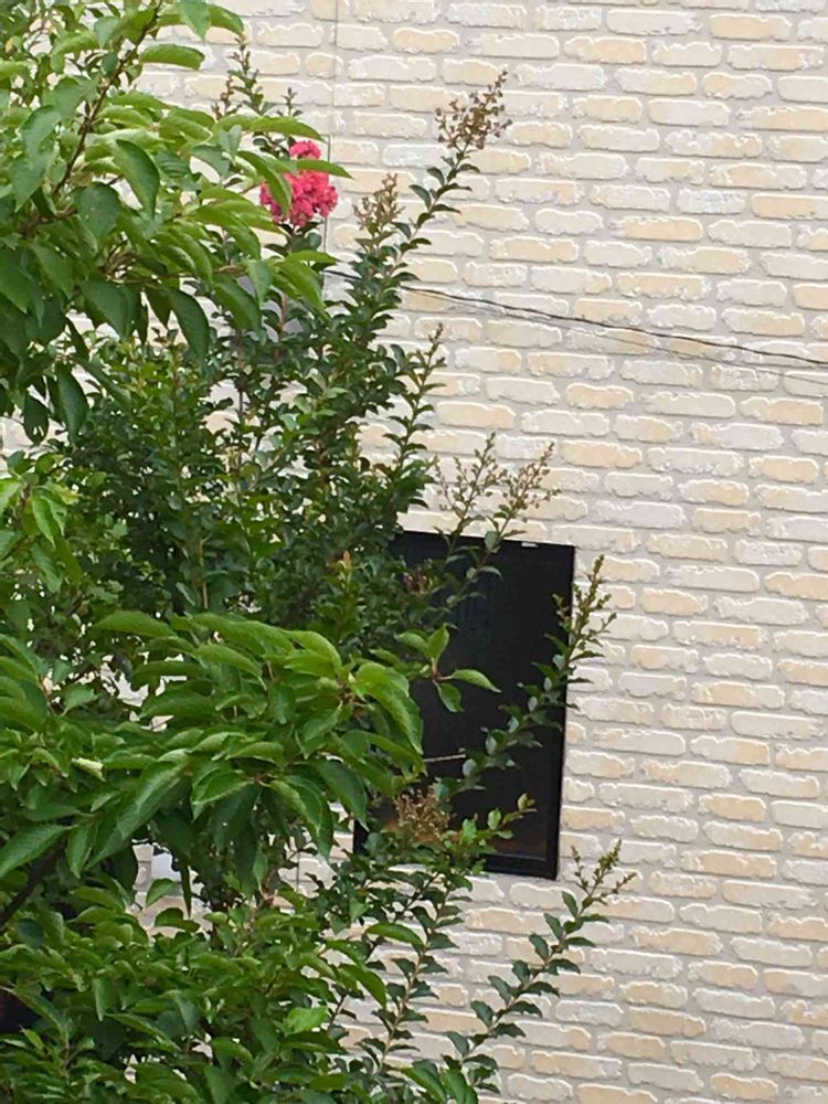 サルスベリが一輪⁇咲きました。写真では桜の木でよく見えないけど、蕾がいっぱいあるのでこれからが楽しみ💕