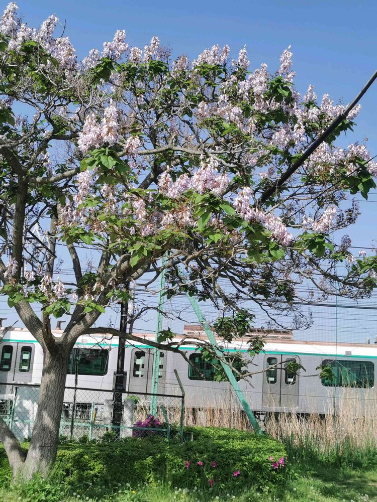 線路脇の公園で、時々、電車が通るので、電車🚃も一緒に撮ろうと思いました。