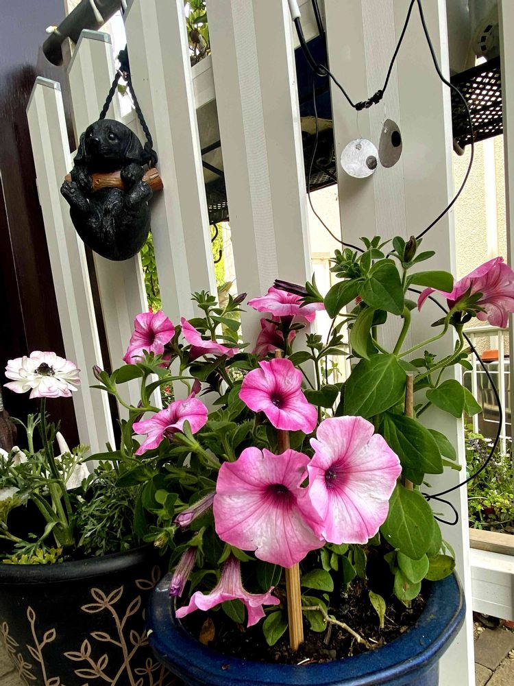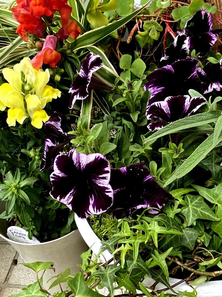 冬に完全に枯れてたのに又々復活してこんなに沢山の花🌸🌸🌸付けてる。④⑤は今年新しくお迎えした紫色💜💜のペチュニアさん達💖