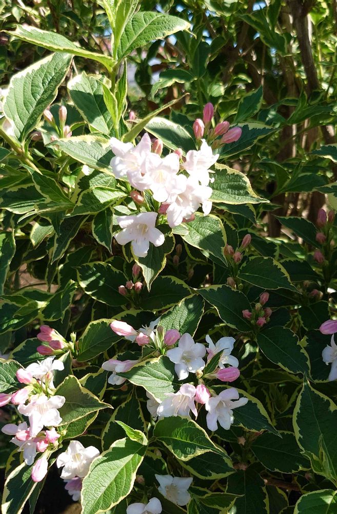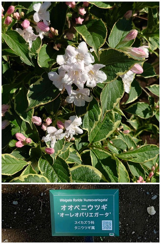 「オオベニウツギ」という名前とは裏腹に、花は白ですね🧐 調べてみると、ツボミはピンクで、咲き進むと白くなっていくとのこと🔍📖 かわいい花です❣️(農業試験場内にて)