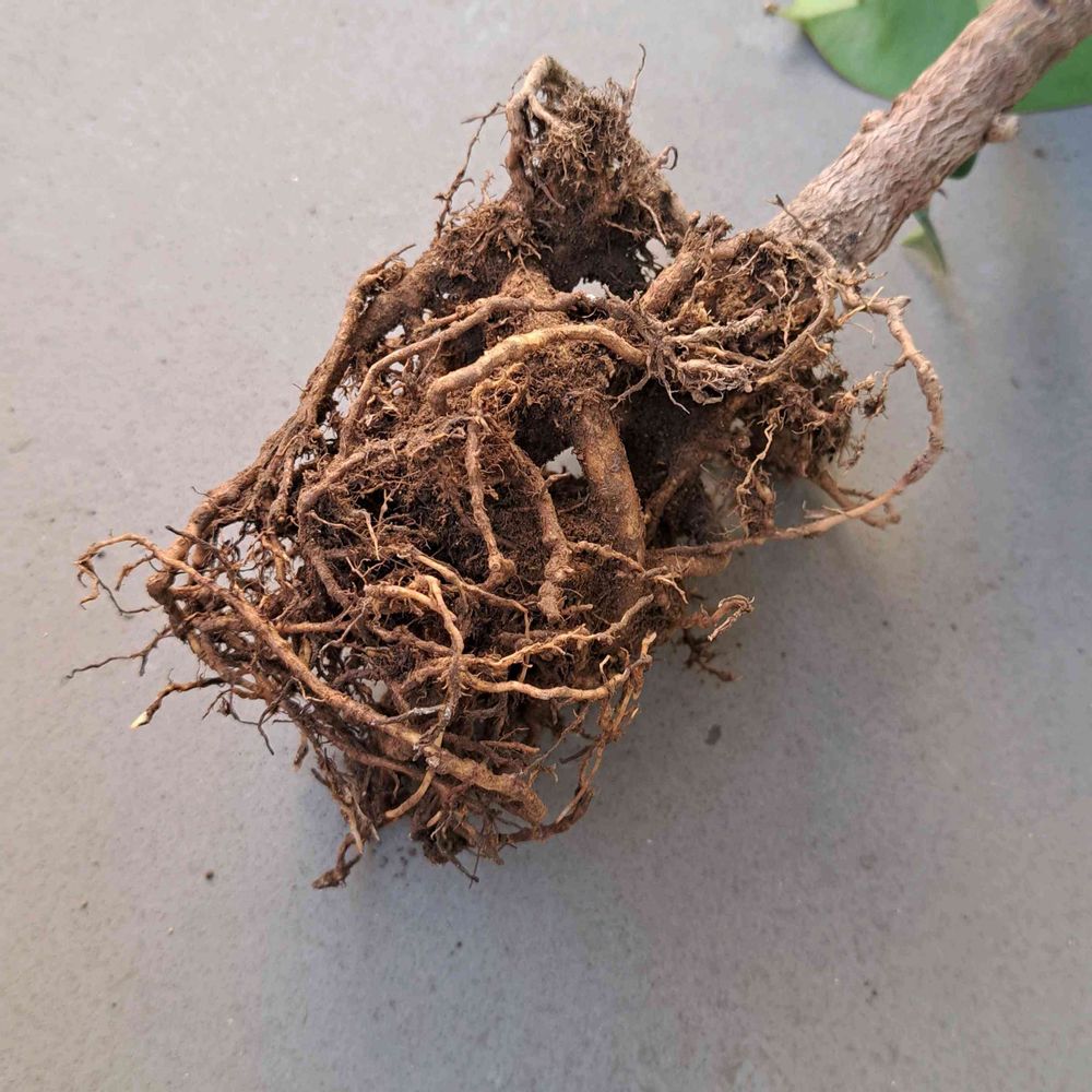 根鉢を見てなるほど、土は劣化してカッチカチ、ほぐしてみるとこの有り様😮💨新根もちらほらあったけどほとんどちぎれてしまいました。当然予定していた6号では大きすぎて、土だけ新しくして購入時のポリポットにそのまま戻しました。今新鉢がないのでまた後日検討。