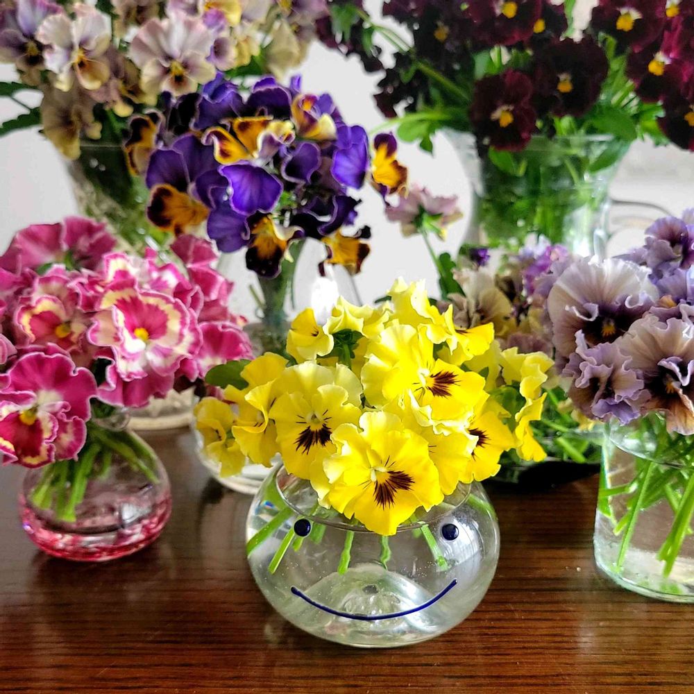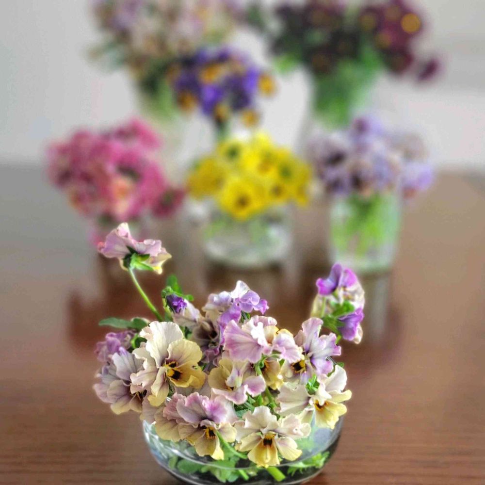 ビオラ、パンジーそろそろ終わりかけてきましたよね。徒長した🌼を部屋に飾って楽しむのもいいですね。凄く綺麗です*。・+(人*´∀`)+・。*