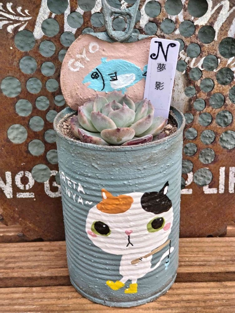 ③同じくぷりまみさんの釣り猫ちゃんリメ缶にセット苗の夢影をIN😊