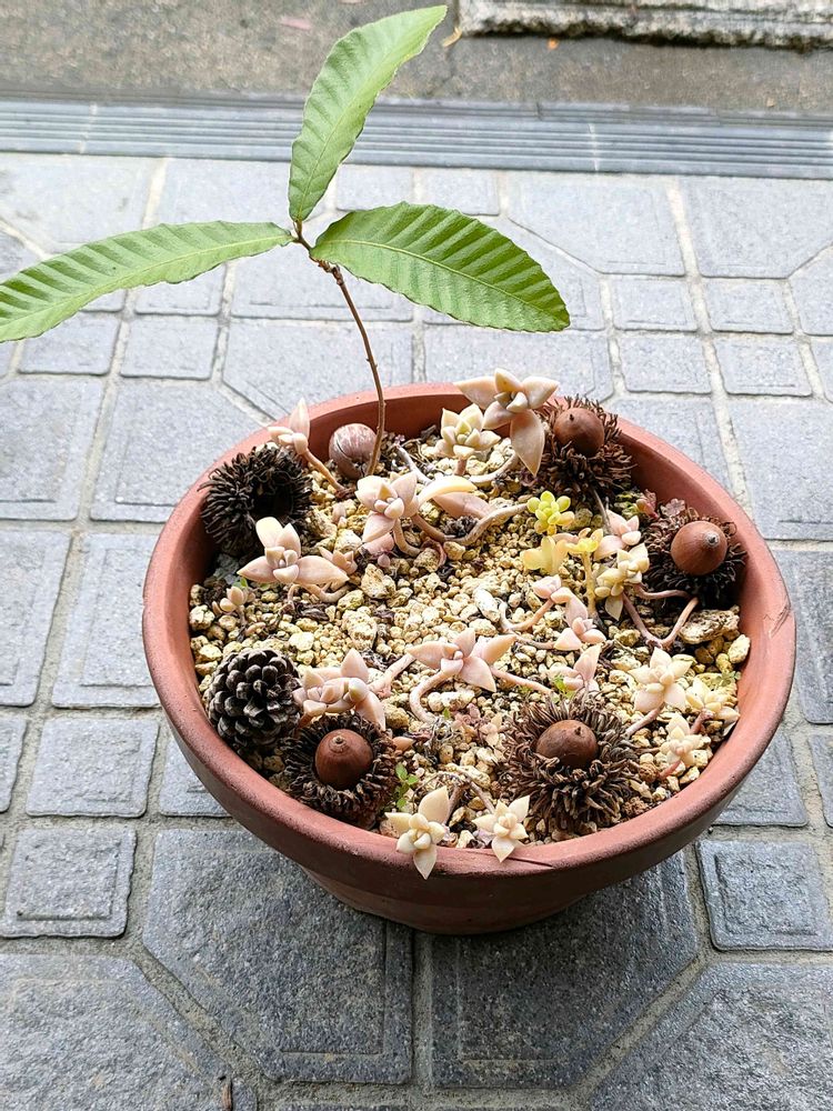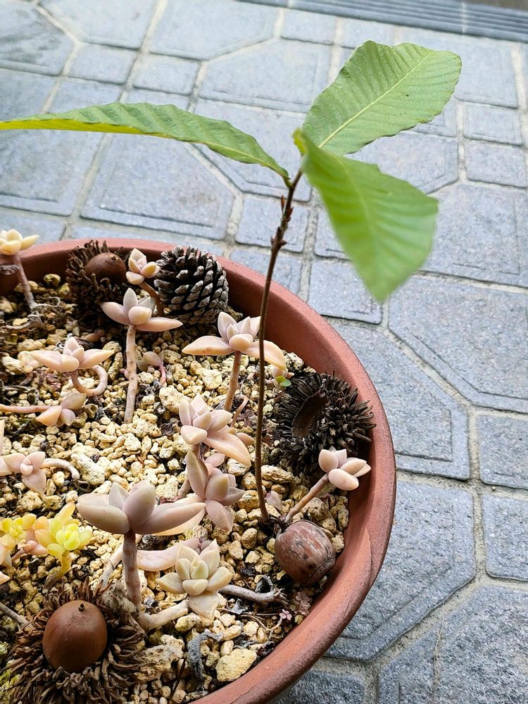 葉挿しに飾っていたどんぐり葉っぱ🌿が出て成長中です😅