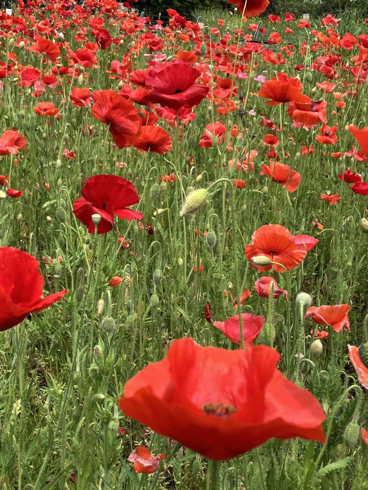 ポピーの花壇🌸たくさんのポピーが風に揺られていました✨