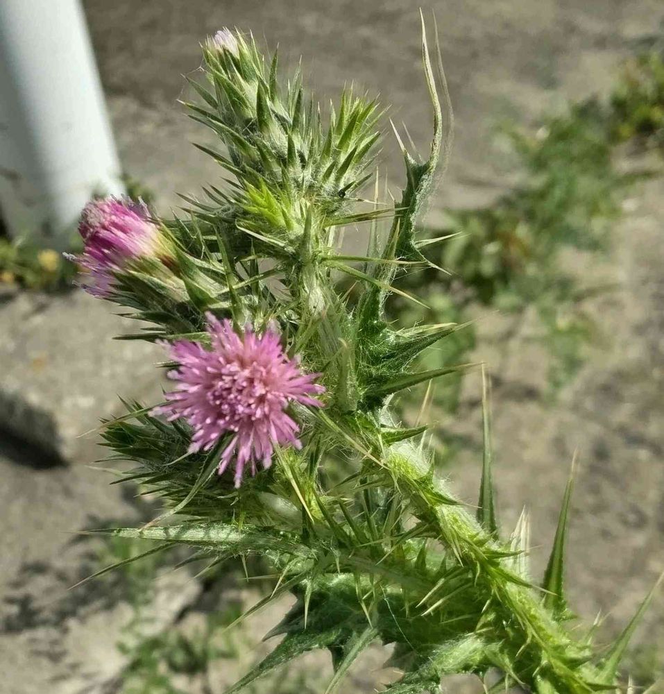 スーパーの駐車場に1本のアメリカオニアザミを見つけました😱