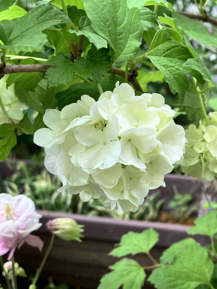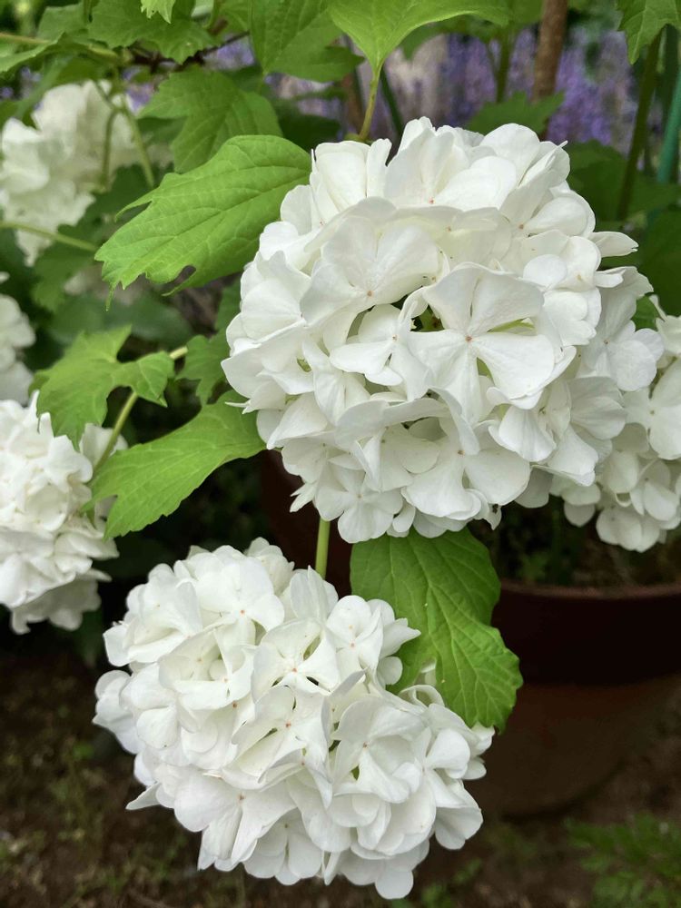 数年前に頂いた花束から挿し木をし、無事に育ったビバーナム スノーボール😊